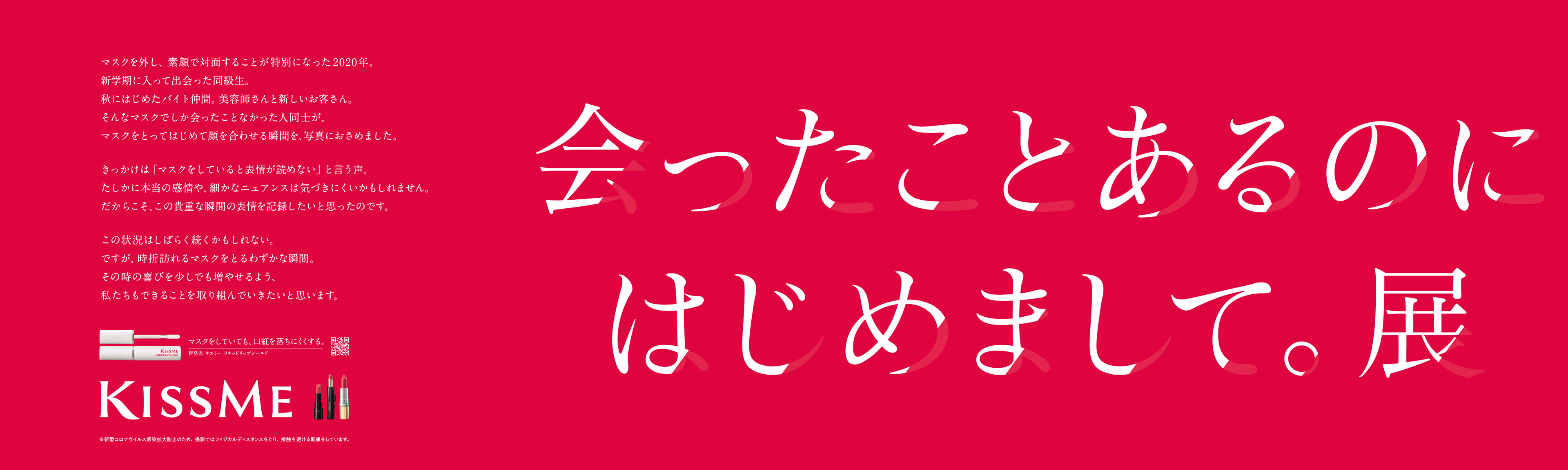 伊勢半KissMeリップコートのプロモーション施策。マスクを外し、素顔で対面することが特別になった2020年。マスクでしか会ったことがなかった人々がマスクをとって初めて顔を合わせる瞬間をおさめた写真展を開催。