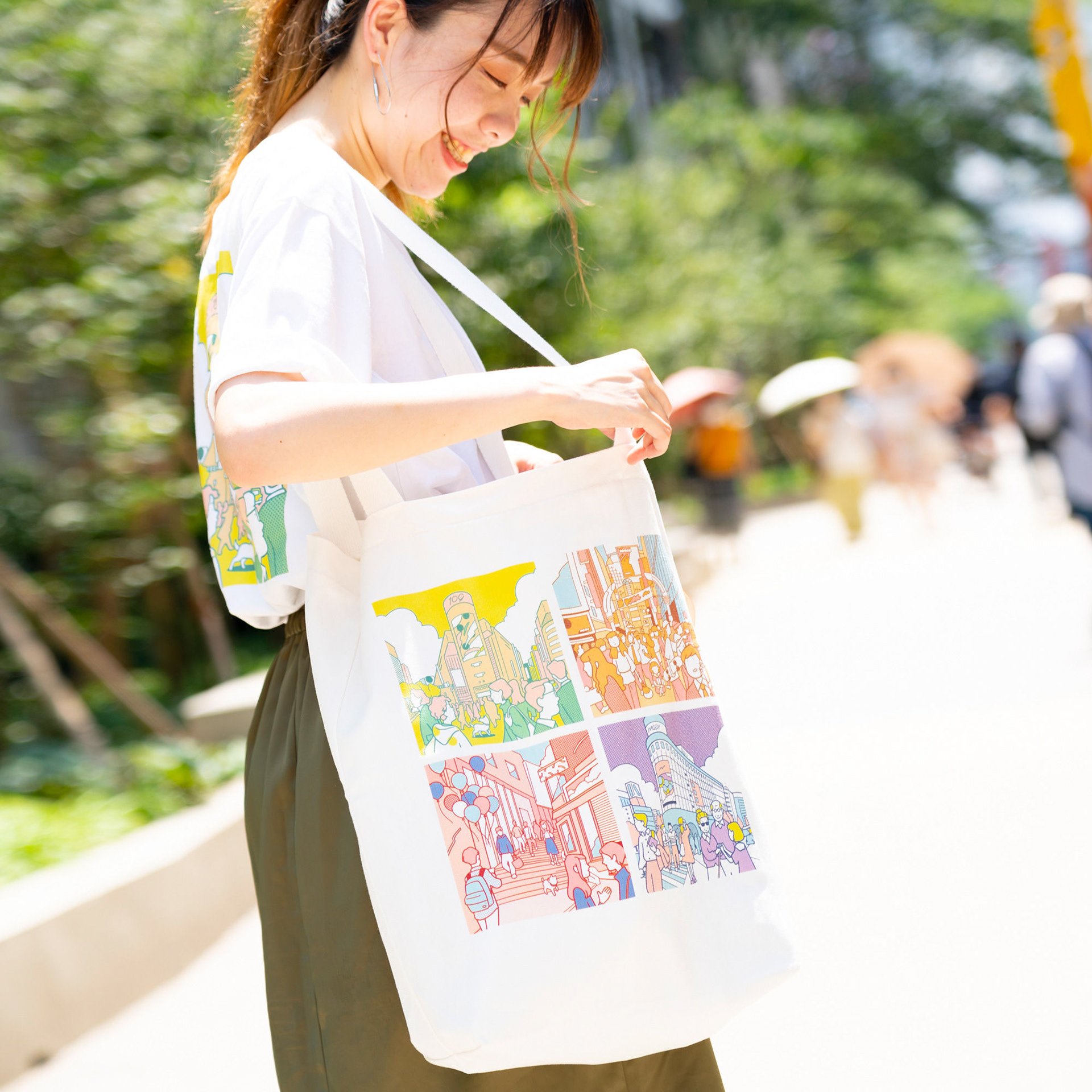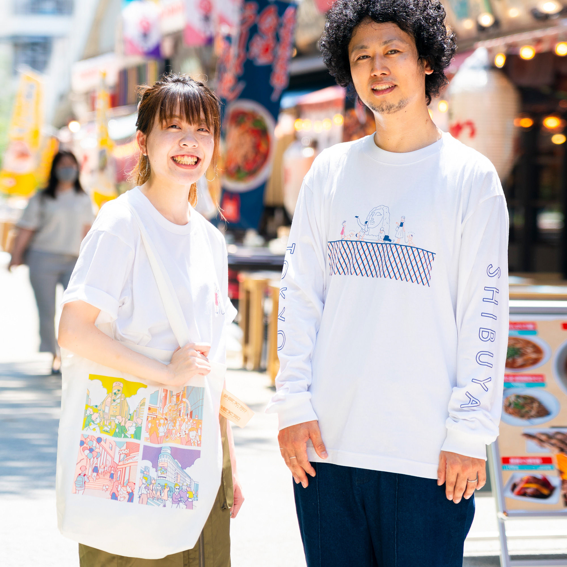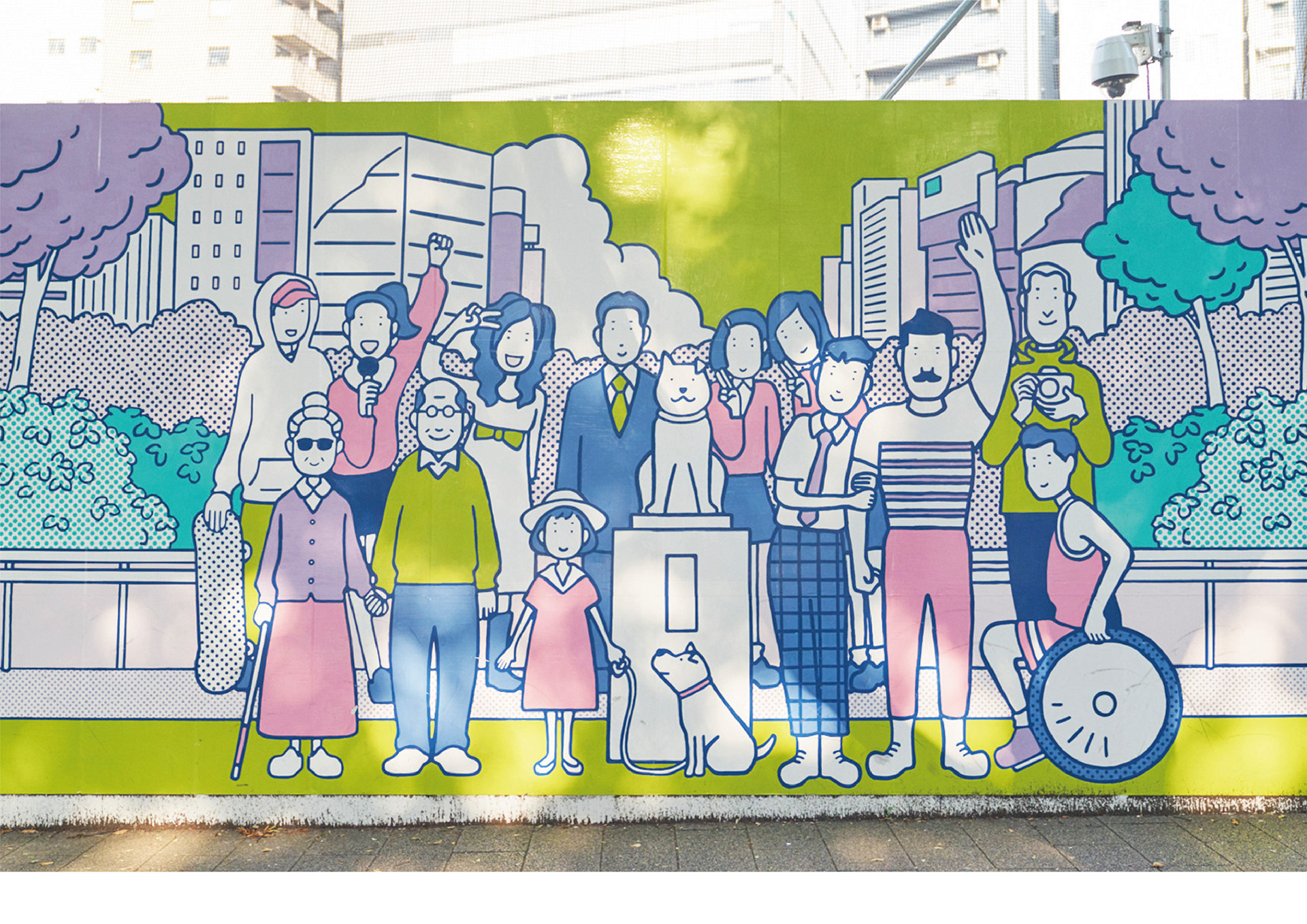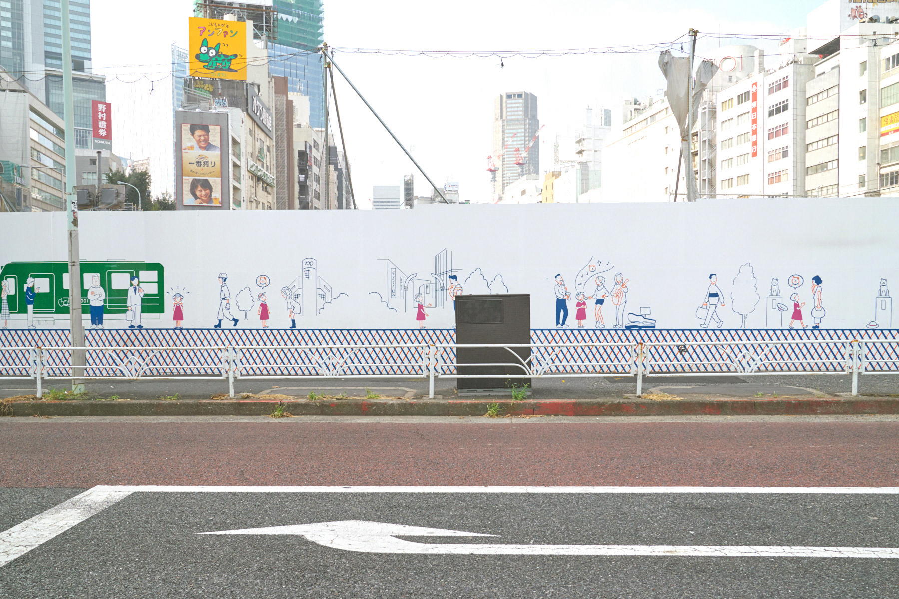 落書きや景観破壊を防止し、渋谷区の街の魅力を伝える為のアートワークを制作。200mの宮下公園の工事の仮囲い壁に渋谷の街を歩いてまわる女の子のストーリーを描き、旅をしていく中で様々な人々が絡み合い形成されていく、1つの物語のあるアートスポットにしました。GOOD DESIGN賞を受賞。その後、渋谷のお土産プロジェクトSHIBUKUROで商品化も実現しました。